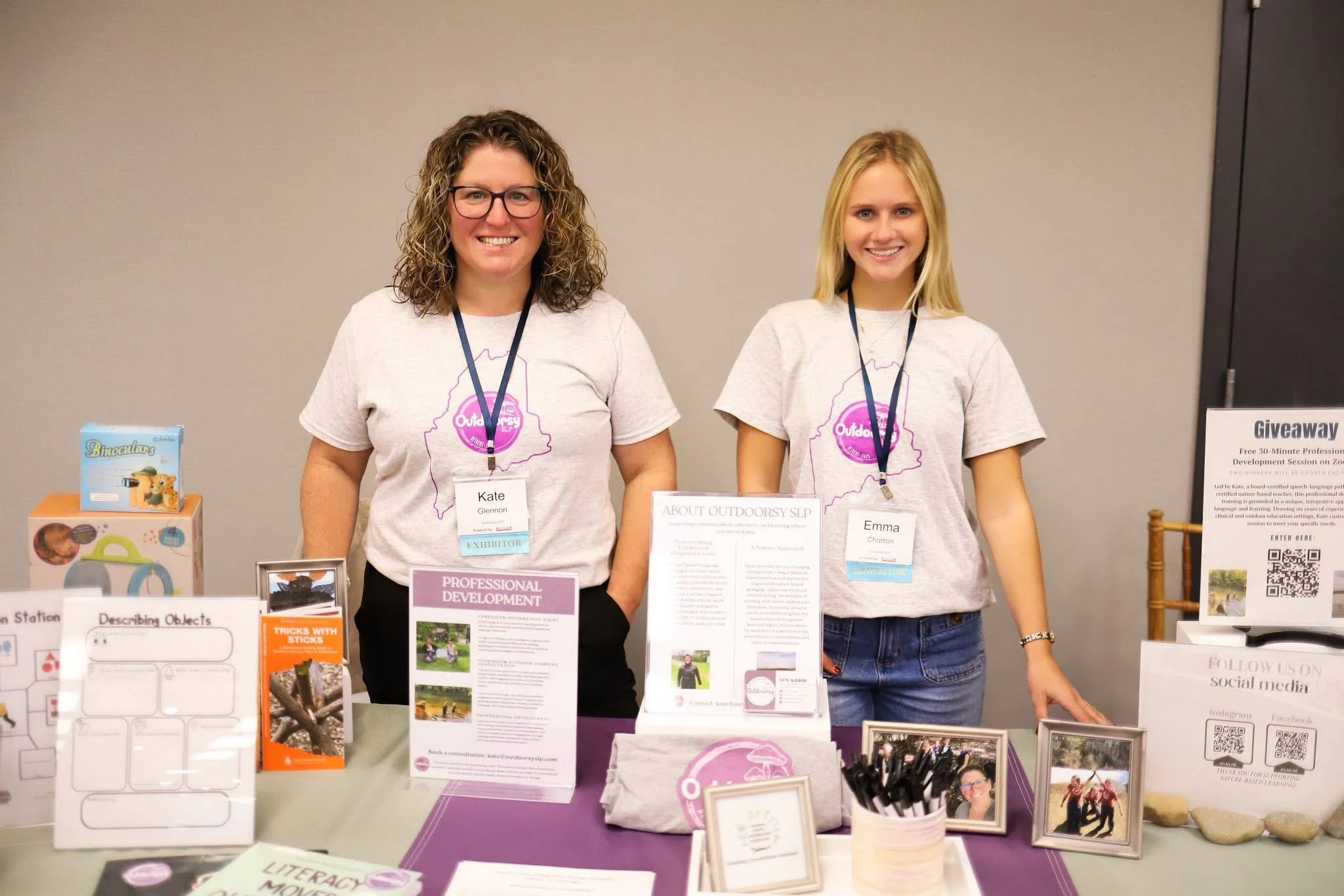 At Maine’s Statewide Early Childhood Education Conference, Kate of Outdoorsy SLP, along with her assistant Emma Charron, had the opportunity to connect with a diverse group of early childhood educators. They shared Outdoorsy SLP’s professional development and speech therapy services while giving attendees a hands-on look at the speech and language materials used in their outdoor-based practice. Educators left with practical tools and strategies they could immediately incorporate into their own classrooms, gaining insight into how outdoor learning can enhance children’s communication and development.